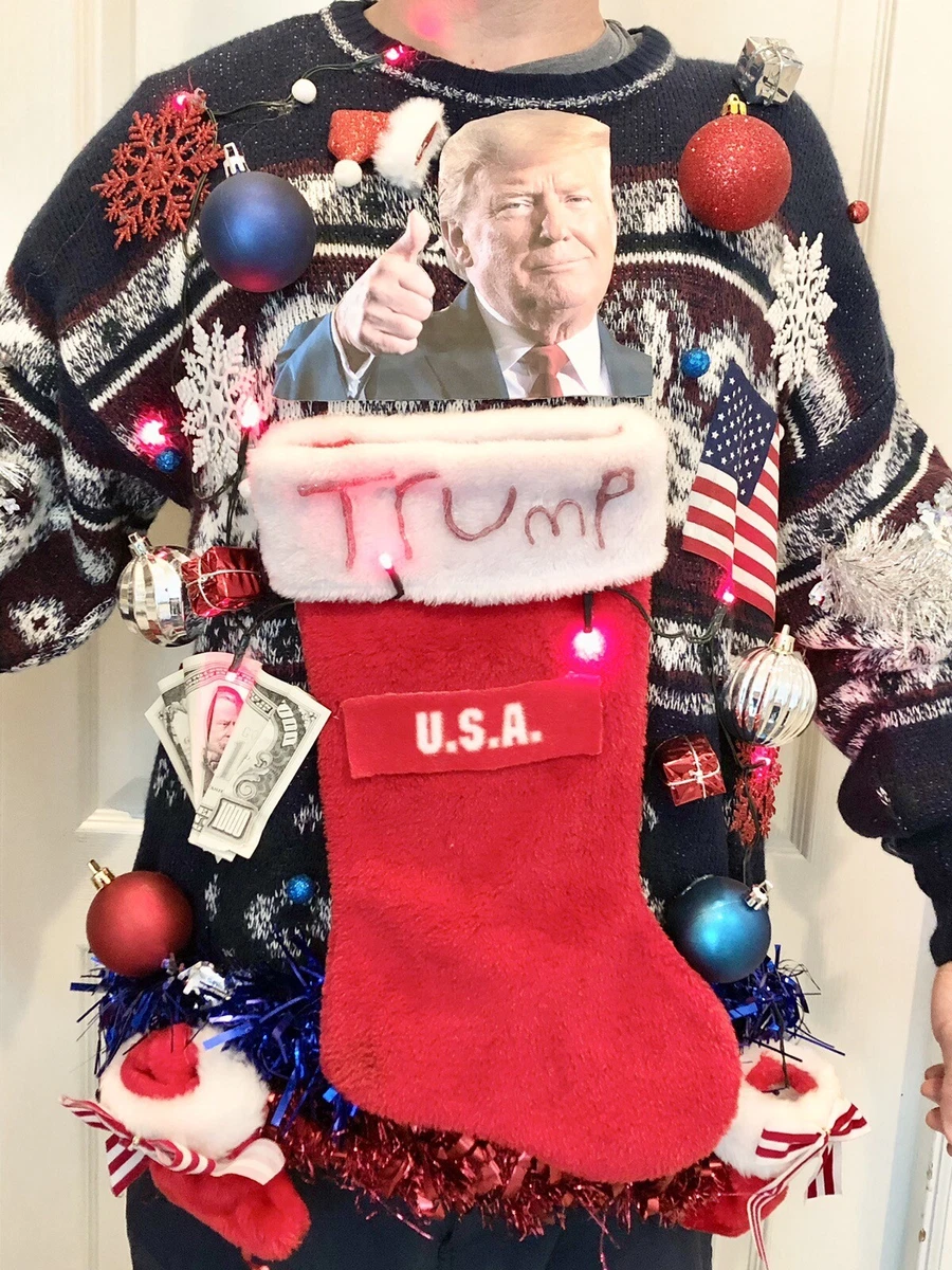 TRUMP Ugly Christmas Sweater 2024 Contest Lights Up Large MAGA XL
